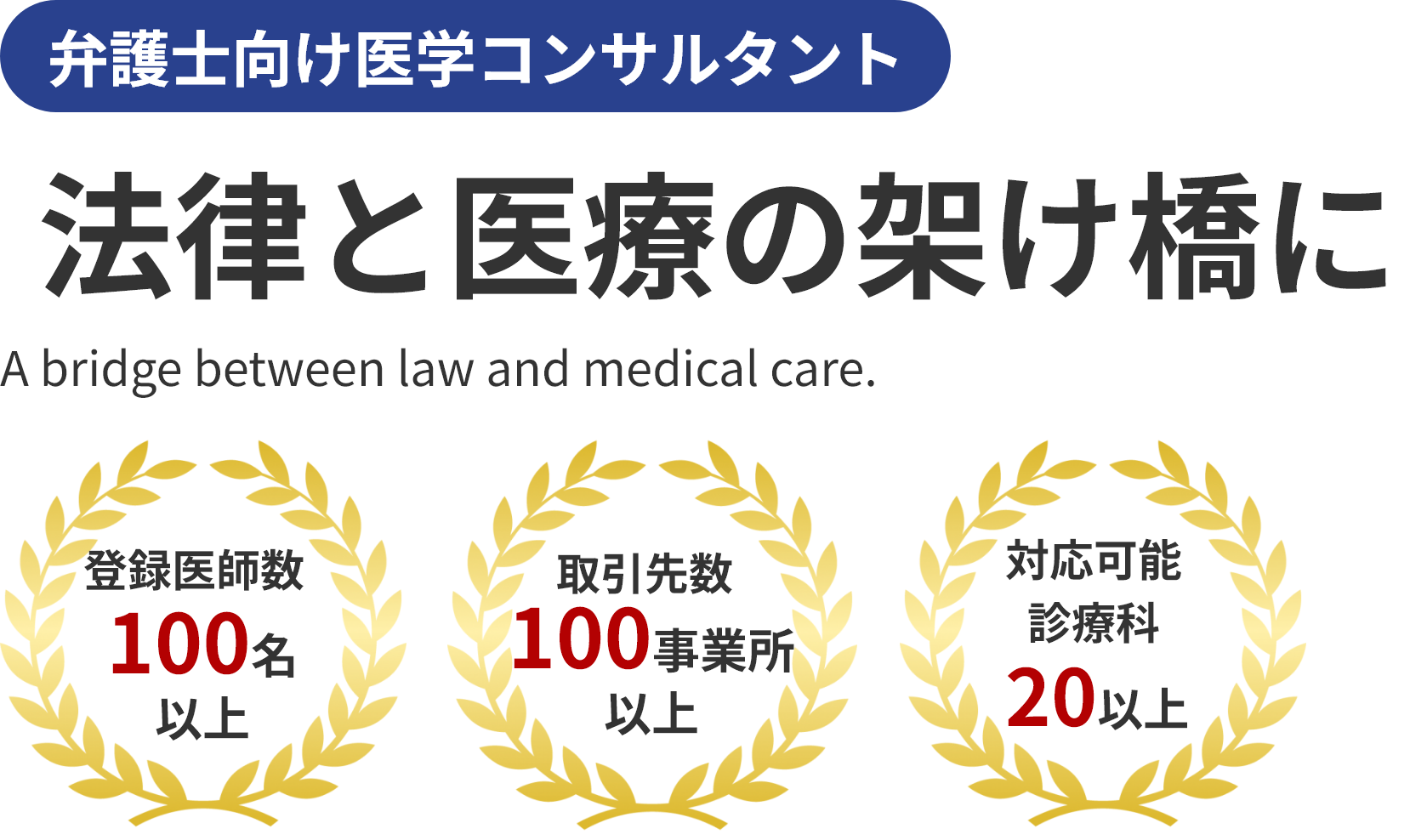 弊社は、そんな医療業界の常識を打ち破り、正しい医療情報を法律の専門家の方々に提供させていただくことで、法律と医療の橋渡しを行う企業となりたいと考えております。法律を駆使し、様々な社会問題を解決している皆様の身近な医療コンサルトとして社会に貢献します。